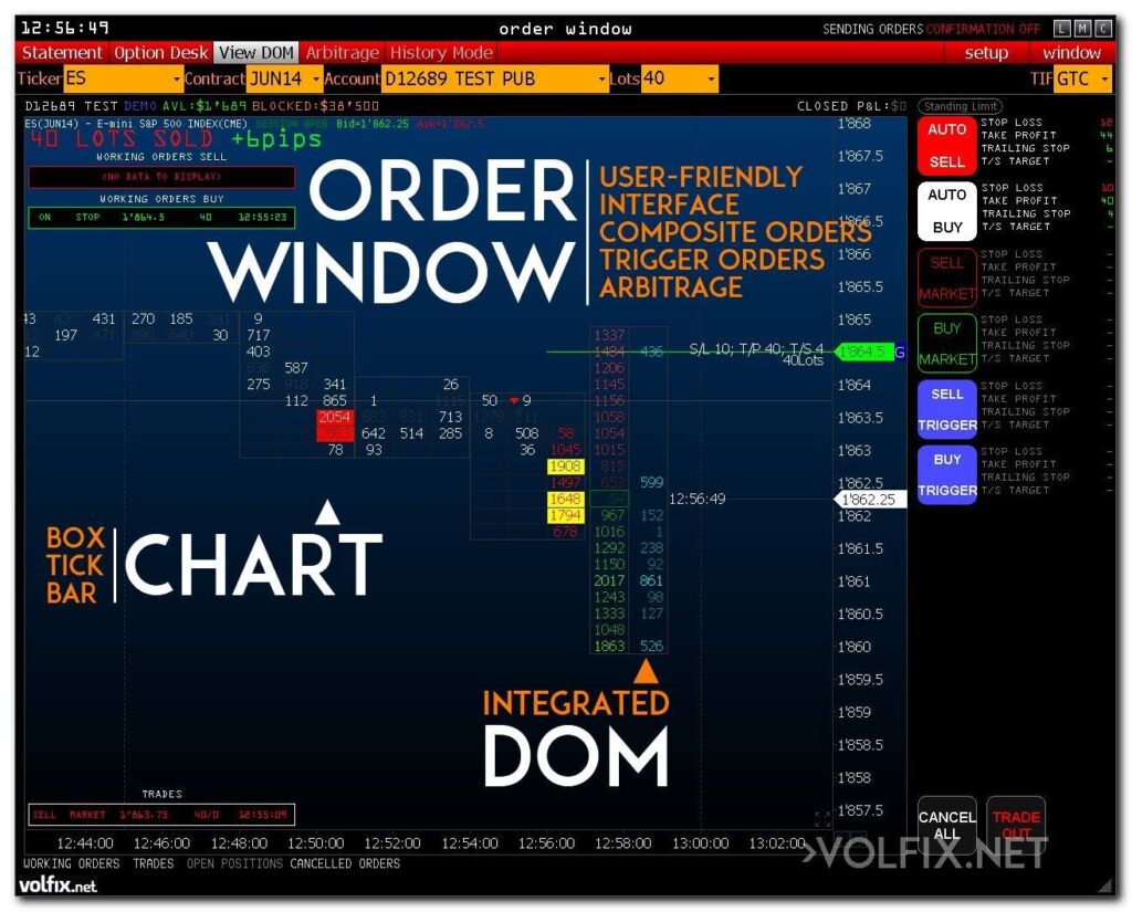 VolFix is a trading platform, its cutting edge interface combines all the latest innovations in the field of sending market orders. Perfect architecture, high-end interface and revolutionary design will change your idea of exchange trade and getting really valuable market information. Professional opportunities of this service for sending market orders give special benefits for operation in derivatives and stock markets of exchanges such as CME, CBOT, NYMEX, COMEX, EUREX, ICE, MOEX, etc.
